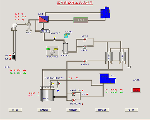 Product classification溫泉水綜合利用系統是利用從地下采到的溫泉水(溫度很高),首先與采暖循環系統進行熱交換后用于建筑內采暖,被降溫后的溫泉水通過除硫化氫、除鐵等水處理工藝后用于人們的溫泉浴,再多余的溫泉水可以用來養殖。溫泉水是一種礦產資源,它不是取之不盡,用之不竭的,應合理地開采和利用。采用該計算機控制系統可以實現溫泉水自動按需取水,較大限度地節約礦產資源。另外該控制系統還具有自動供水,自動水處理(自動反沖洗),采暖回水溫度與溫泉水排放溫度自動調節等功能,實現溫泉水的理想利用。