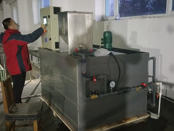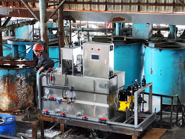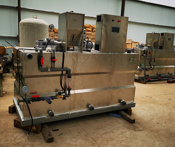 我公司研制生產的新型絮凝劑加藥機是在總結現行同類設備優缺點的基礎上開發的,其自動化程度高,配置濃度及加藥量準確,操作簡單方便。該自動加藥機適用于粉狀物料的全自動連續配制和投加系統,從粉劑到配制好的溶液,到藥劑投加,整個過程實現自動、安全、連續運行。
